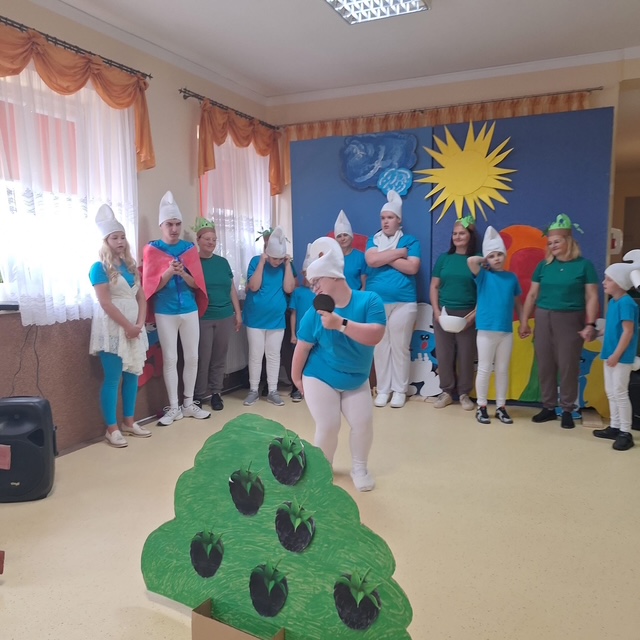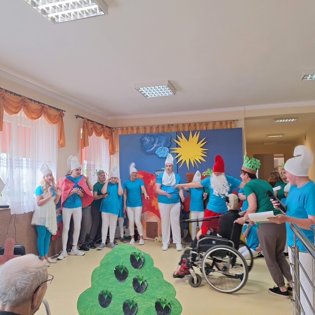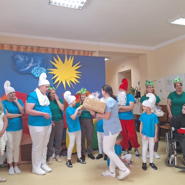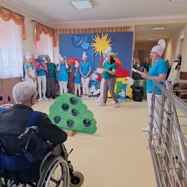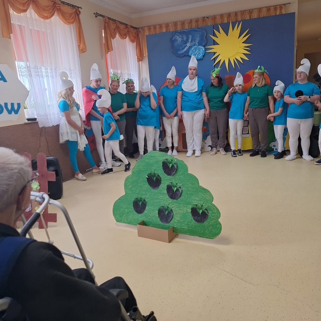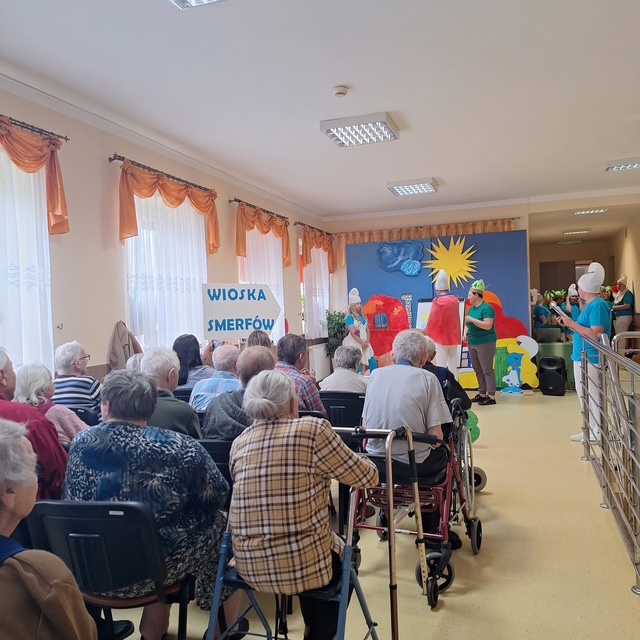 Na scenie zagościła bajkowa „Wioska Smerfów”, która przeniosła nas wszystkich do magicznego świata niebieskich bohaterów. Były śmiechy, brawa i wspólna zabawa, a nasi Mieszkańcy z wielkim wzruszeniem przyjęli młodych artystów.